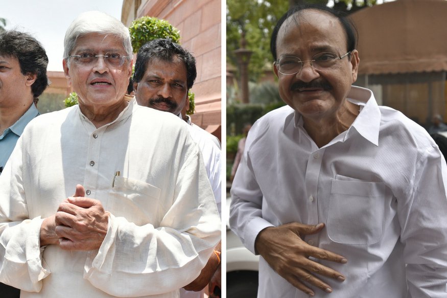இத்தேர்தலில் பாஜக கூட்டணி சார்பில் வெங்கையா நாயுடுவும், காங்கிரஸ் மற்றும் எதிர்க் கட்சிகளின் சார்பில், மகாத்மா காந்தியின் பேரரான, கோபாலகிருஷ்ண காந்தியும் போட்டியிடுகின்றனர்.