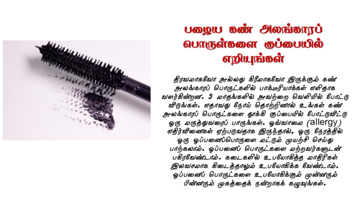 - பழைய கண் அலங்காரப் பொருள்களை குப்பையில் எறியுங்கள்