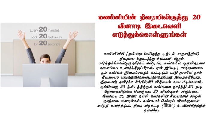 - கணினியின் திரையிலிருந்து 20 வினாடி இடைவெளி எடுத்துக்கொள்ளுங்கள்