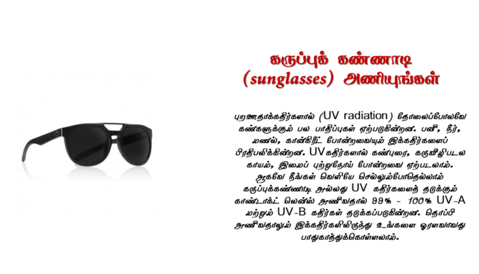 - கருப்புக் கண்ணாடி (sunglasses) அணியுங்கள்