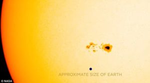 நாசாவின் சூரிய இயக்கவியல் ஆய்வுக்கூடம் சூரியனில் 74,560 மைல் அகலம் கொண்ட சூரியப்புள்ளியை கண்டறிந்து உள்ளது. அதற்கு ஏஆர் 2665 என பெயரிடப்பட்டு உள்ளது. இதன் பரப்பளவு பூமியை விட 19 மடங்கு பெரியதாகும். இந்த பகுதி சுழன்று வருவதுடன் விரைவாக வளர்ந்து வருகிறது என நாசா ஆய்வுக்கூடம் தெரிவித்துள்ளது. சூரியனில் காணப்படும் கருப்புப்புள்ளிகள் பொதுவாக சூரியனின் மற்றபகுதிகளை விட குளிர்ச்சியானதாக இருக்கும். தற்போது கண்டறியப்பட்டுள்ள இந்த பகுதியிலிருந்து பூமியை நோக்கி கொடிய கதிர்வீச்சுகள் எழலாம் என கருதப்படுகிறது. இப்பகுதியிலிருந்து சோலார் ஃப்ளேர் ஏற்பட வாய்ப்பு இருக்கிறது. சோலார் ஃப்ளேர் ஏற்படும்போது இந்த பகுதிகள் மிகப் பிரகாசமாக காணப்படும். சோலார் ஃப்ளேர் சில நிமிடங்களில் இருந்து பல மணி நேரங்கள் வரை நீடிக்கிறது.