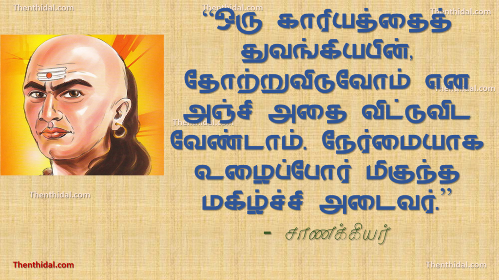 “ஒரு காரியத்தைத் துவங்கியபின், தோற்றுவிடுவோம் என அஞ்சி அதை விட்டுவிட வேண்டாம். நேர்மையாக உழைப்போர் மிகுந்த மகிழ்ச்சி அடைவர்.”
