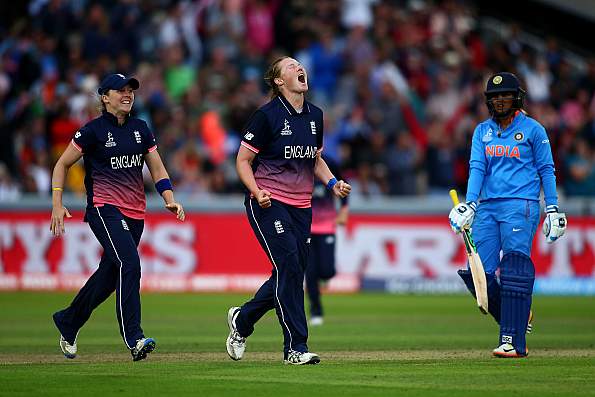 இதனைத் தொடர்ந்து, 229 ரன்கள் எடுத்தால் வெற்றி என்ற இலக்குடன் களமிறங்கிய இந்திய அணியின் மந்தனா, கேப்டன் மிதாலி ராஜ் ஆகியோர் சொற்ப ரன்களில் ஆட்டமிழந்தனர். இதனையடுத்து நிதான ஆட்டத்தை வெளிப்படுத்திய பிஜி.ராவட் 115 பந்துகளில் 86 ரன்கள் குவித்து அணியின் வலுவான நிலைக்கு அடித்தளமிட்டார். இந்நிலையில் அடுத்தடுத்து விக்கெட்டுகள் சரிந்த நிலையில், இந்தியா தடுமாறத்தொடங்கியது. இறுதியாக 48.4 ஓவர்களில் அனைத்து விக்கெட்டுகளையும் இழந்த இந்திய அணி 219 ரன்களுக்கு ஆட்டமிழந்து, தோல்வி அடைந்தது. இந்த வெற்றியின் மூலம் 4வது முறையாக இங்கிலாந்து அணி உலகக்கோப்பை சாம்பியன் பட்டத்தை வென்றுள்ளது.