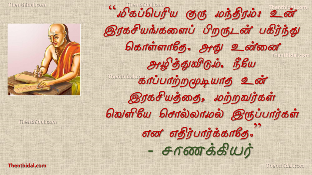 “மிகப்பெரிய குரு மந்திரம்: உன் இரகசியங்களைப் பிறருடன் பகிர்ந்து கொள்ளாதே. அது உன்னை அழித்துவிடும். நீயே காப்பாற்றமுடியாத உன் இரகசியத்தை, மற்றவர்கள் வெளியே சொல்லாமல் இருப்பார்கள் என எதிர்பார்க்காதே.”