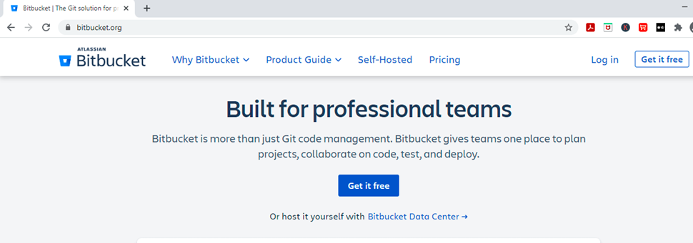1] Login to bitbucket.org and click on “Get it free” to sign up for new id or login with a gmail / Microsoft / Apple ids if you do not have a previously registered login.