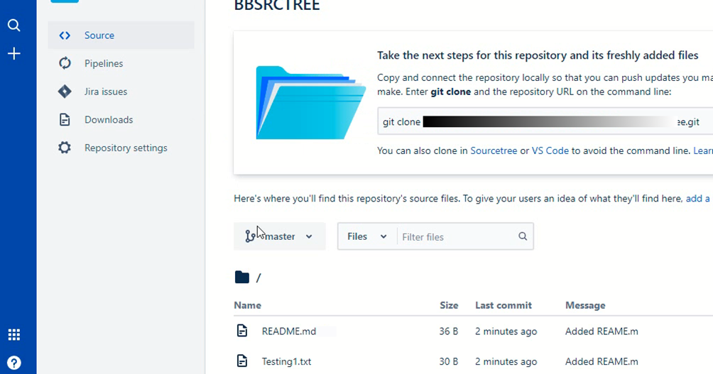 12] Refresh Bitbucket and open source and verify if the files are listed under master branch.