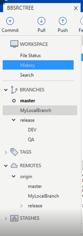 3] The branches that exist at remote will now appear at sourcetree under REMOTES.