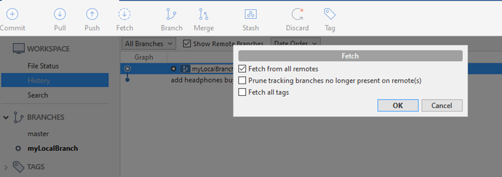 2] Click on “Fetch” button to retrieve the currently existing files from the remote branches.