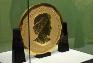 இங்கு 100 கிலோ எடையில், 53 செ.மீ. விட்டம் 3 செ.மீ. தடிமன் அளவில் சுத்த தங்கத்தால் ஆன கனடா நாட்டு நாணயம் ஒன்று பாதுகாக்கப்பட்டு வந்தது. 2-ம் எலிசெபத் ராணியின் உருவம் பொறிக்கப்பட்ட இந்த நாணயம் தூய்மையான தரத்துக்காக கின்னஸ் புத்தகத்திலும் இடம் பெற்றிருந்தது. இதன் மதிப்பு 4 மில்லியன் டாலர் (சுமார் ரூ.26 கோடி) என மதிப்பிடப்பட்டு உள்ளது.